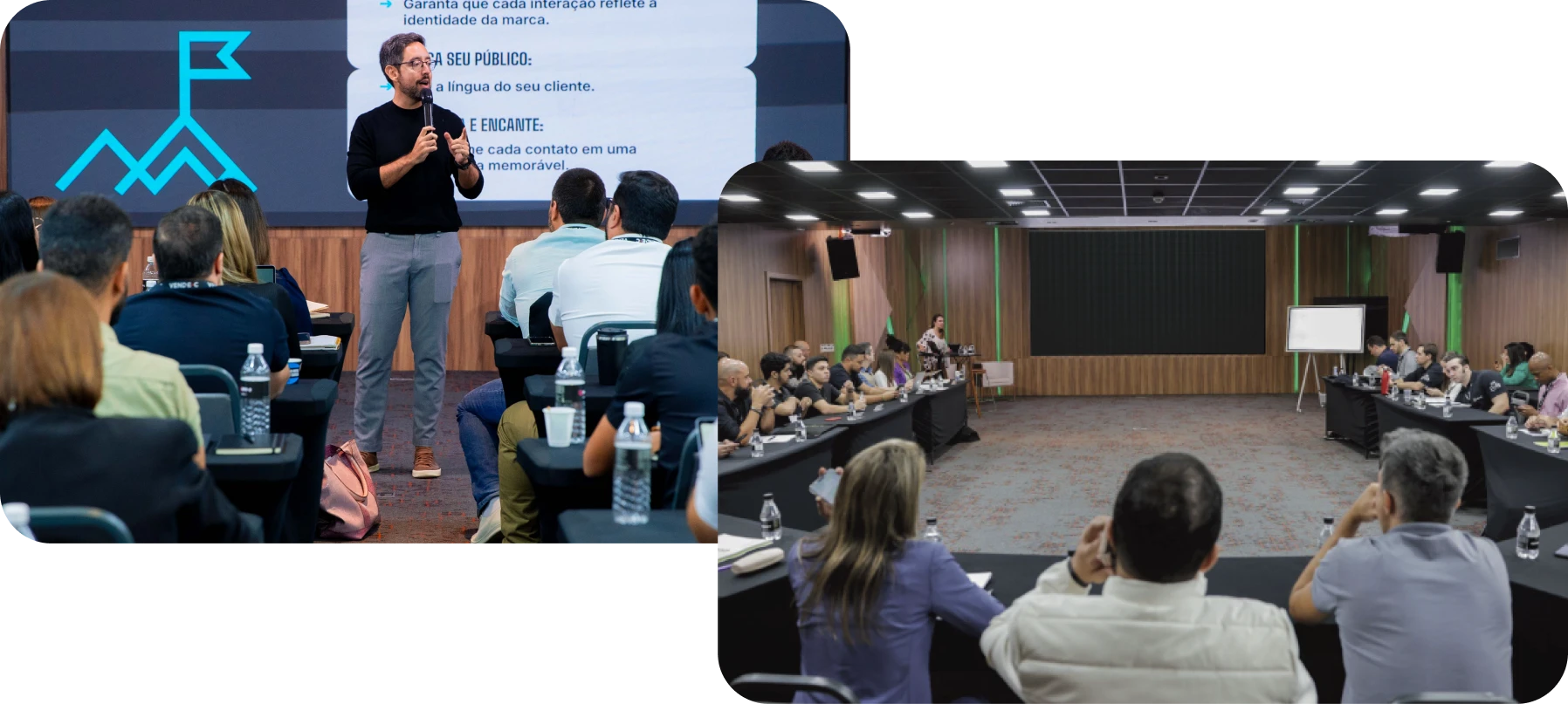 Você terá acesso exclusivo às nossas formações e eventos presenciais, além de acesso à plataforma de treinamento para todo o seu time de vendas.